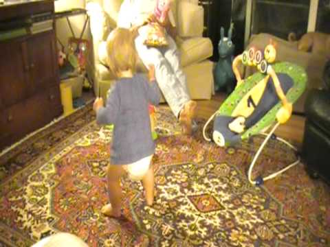 Somehow it has been difficult to get a really good video of Samantha walking but this one will do. She loves this toy that Nonni got for her that plays a popular dance song that unfortunately gets stuck in your head for hours. She even tries to bust out a few dance moves!
